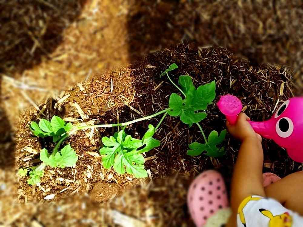 スイカ🍉を1番楽しみにしているのは可愛いお手手に持ったぞうさん🐘のじょうろで水をまいている幼い方でしょうね✌️😊🍉🌱