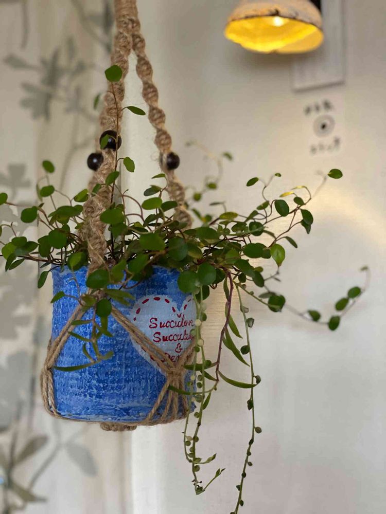 青いリメ缶に葉っぱ、凄く似合ってるね✨プラハンもこの色が合ってるよね~💕