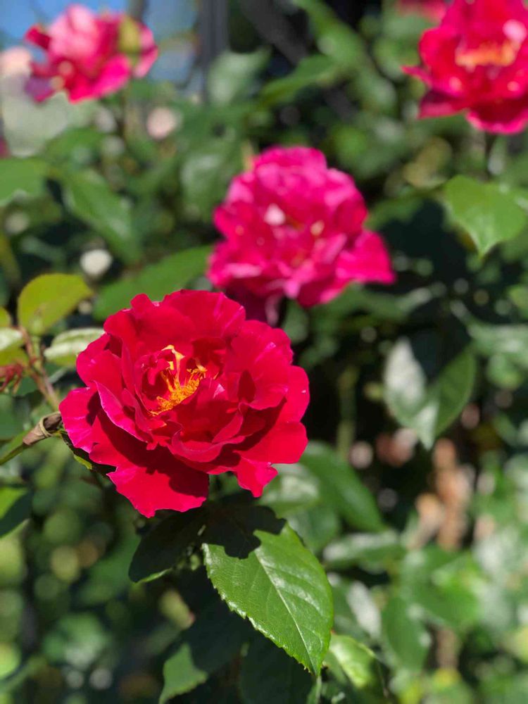 ローズレッドにピンクのストライプが入る可愛い薔薇です。