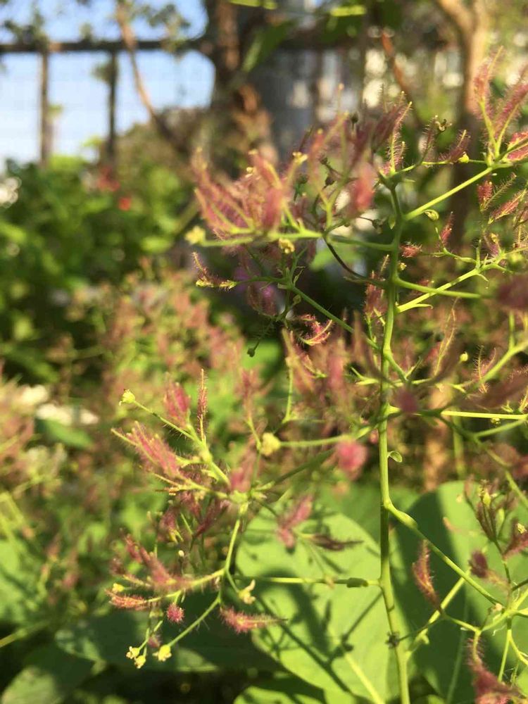 やっと 家にたどり着いて 横目で見たスモークツリーは 夕陽に照らされて モクっと 霞んでました。