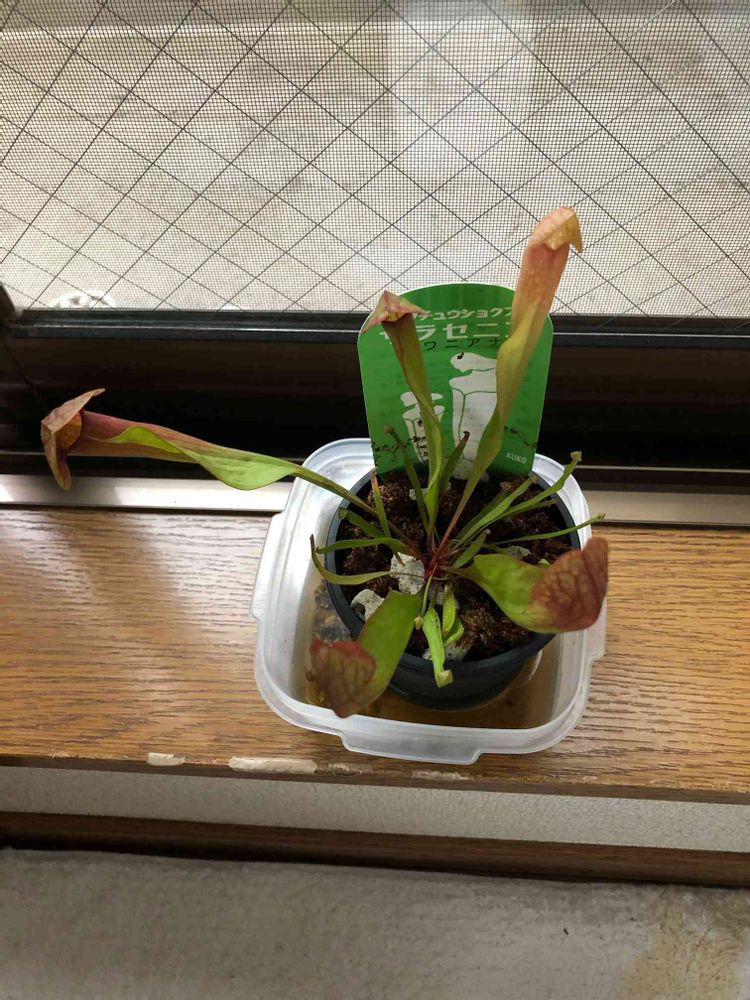 ムシトリスミレはお外に出しているので室内にサラセニア置いちゃった❣️ムシトリ期待してます〜