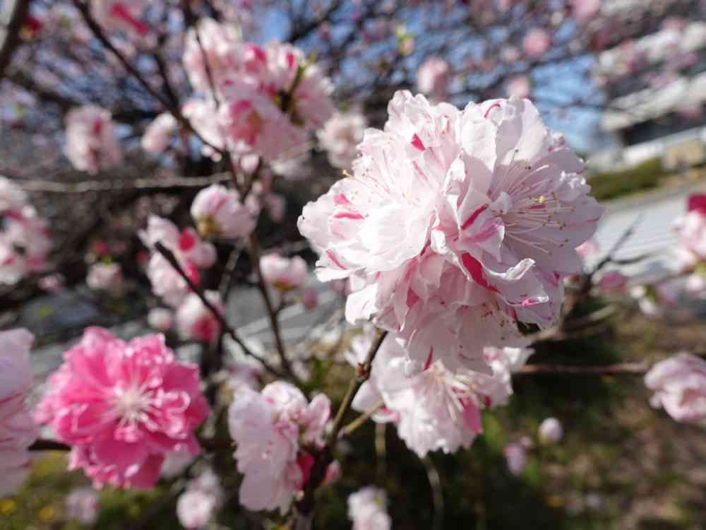 名古屋市の護国神社前に咲く、源平桃です。