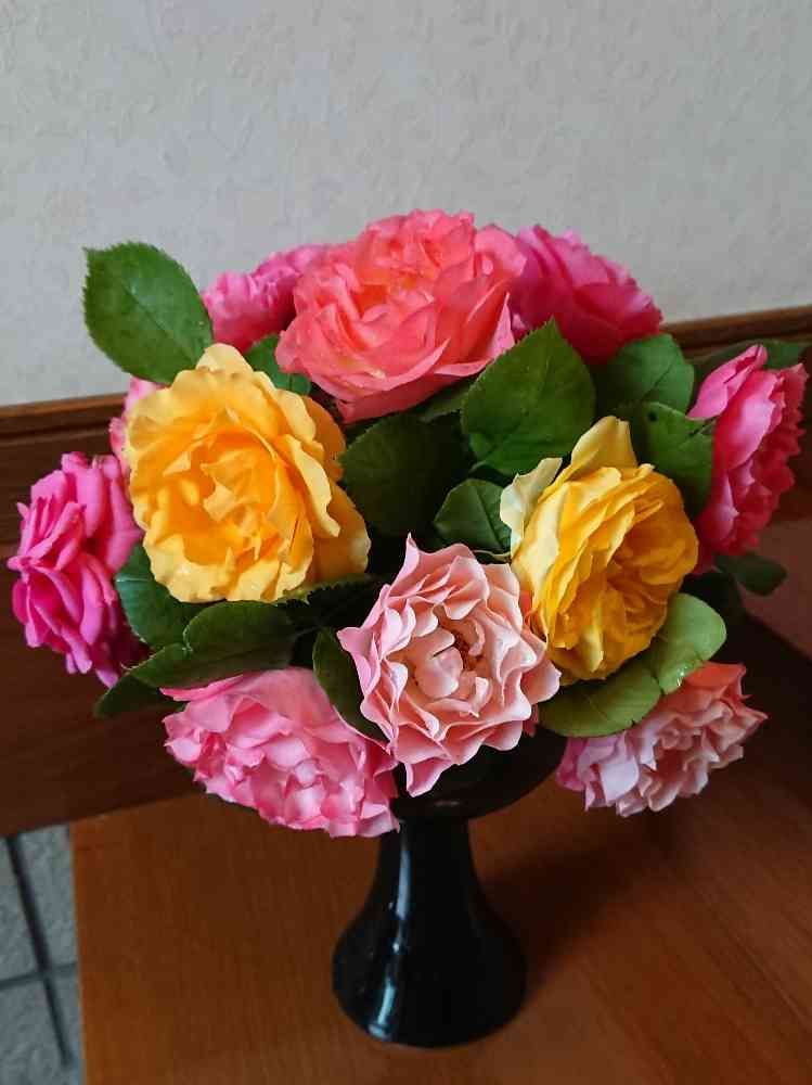 ☔で散るまでにカット✂️した🌹達をフラワーベースに挿しました❣️