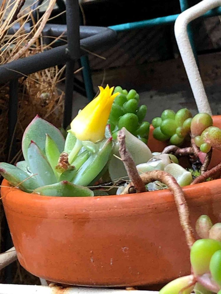 3号鉢の多肉ちゃんにチューリップのようなお花が🌷