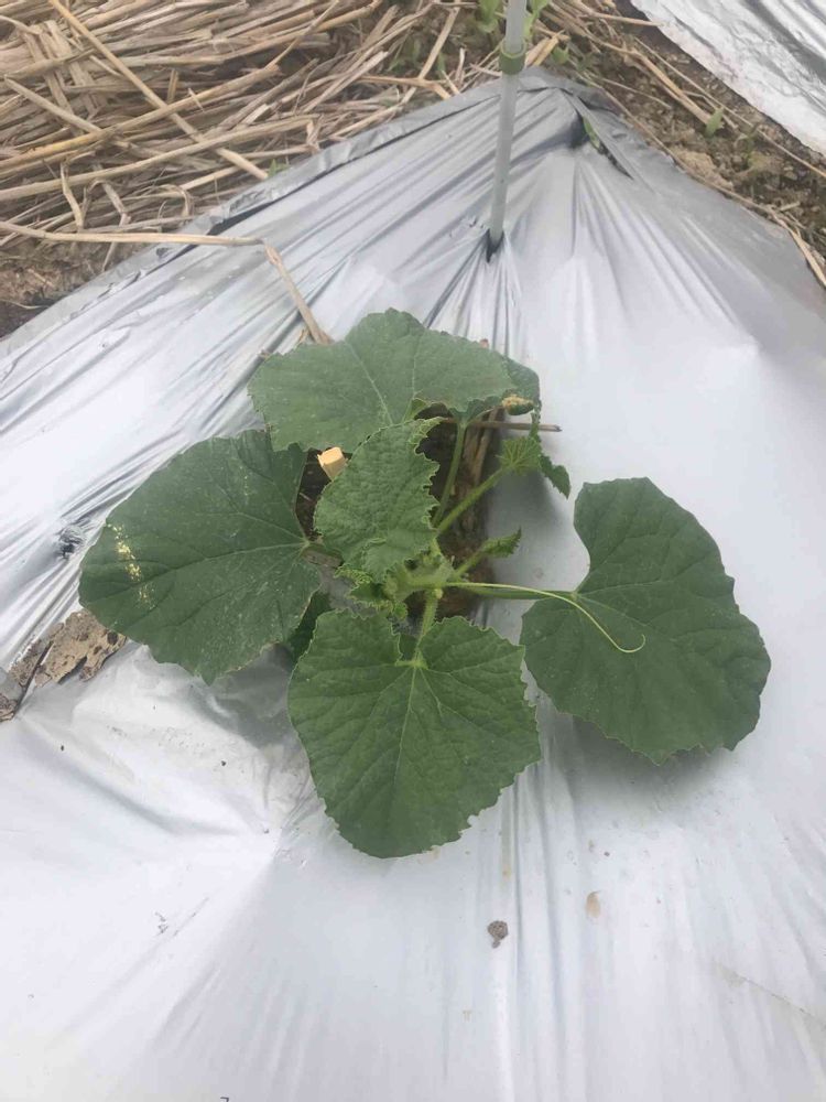 去年失敗した網干メロン。うどん粉病予防にサンボルドーを散布しました。