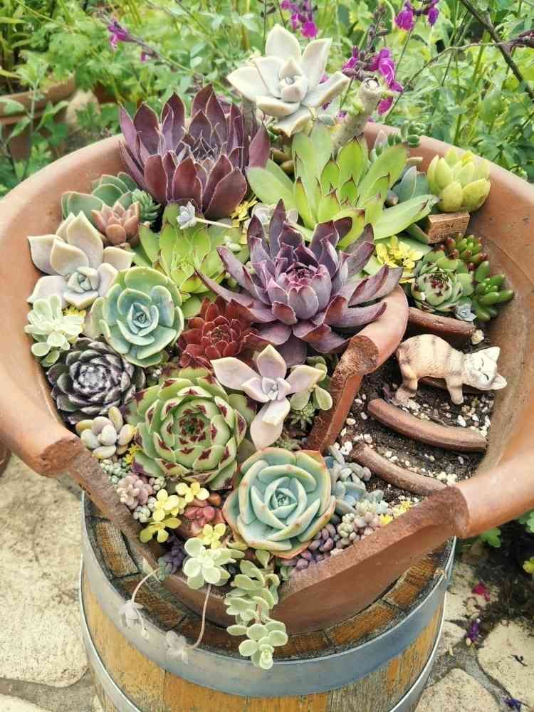 多肉の寄せ植えブロークンポットステキですね