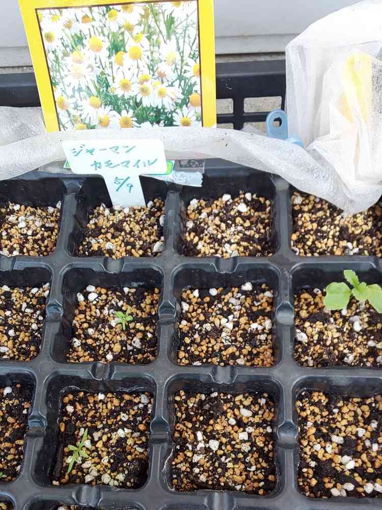 3週間以上前に種をまいたジャーマンカモミールやっと数個発芽したと思ったら別の子🌱が⁉️😅