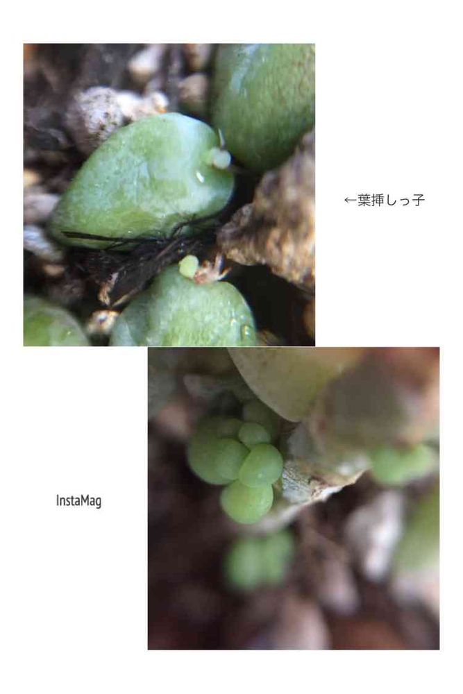 葉挿しっ子からは目で確認できる程度の芽が出て、チョンパした挿し木からは2つ根が出たので土に植えました。