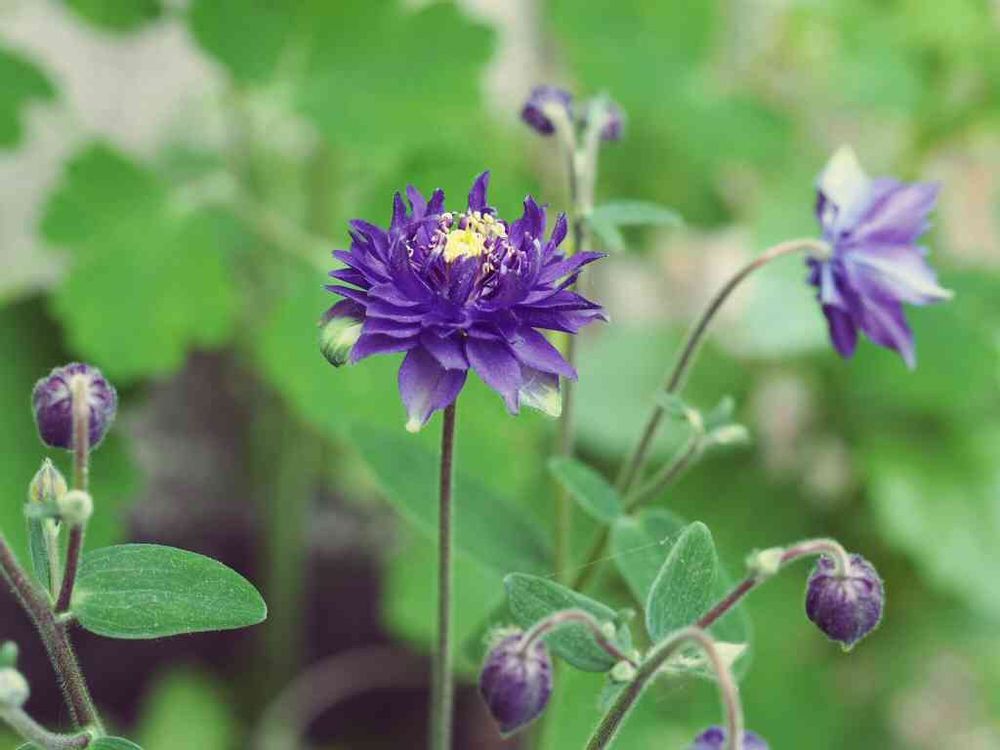 八重のオダマキが家の裏の勝手口の近くに咲いていました