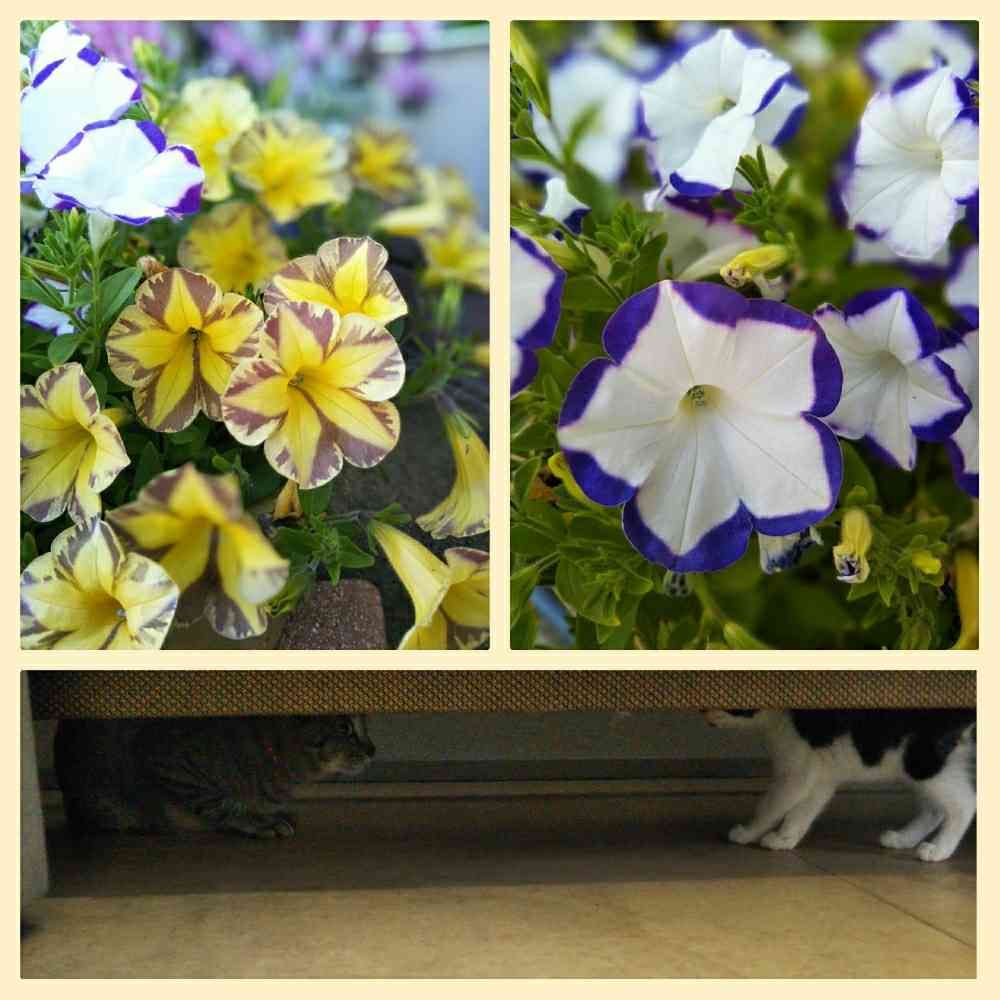 サフィニアアート江戸しぼりととらネコ満開中〜💛