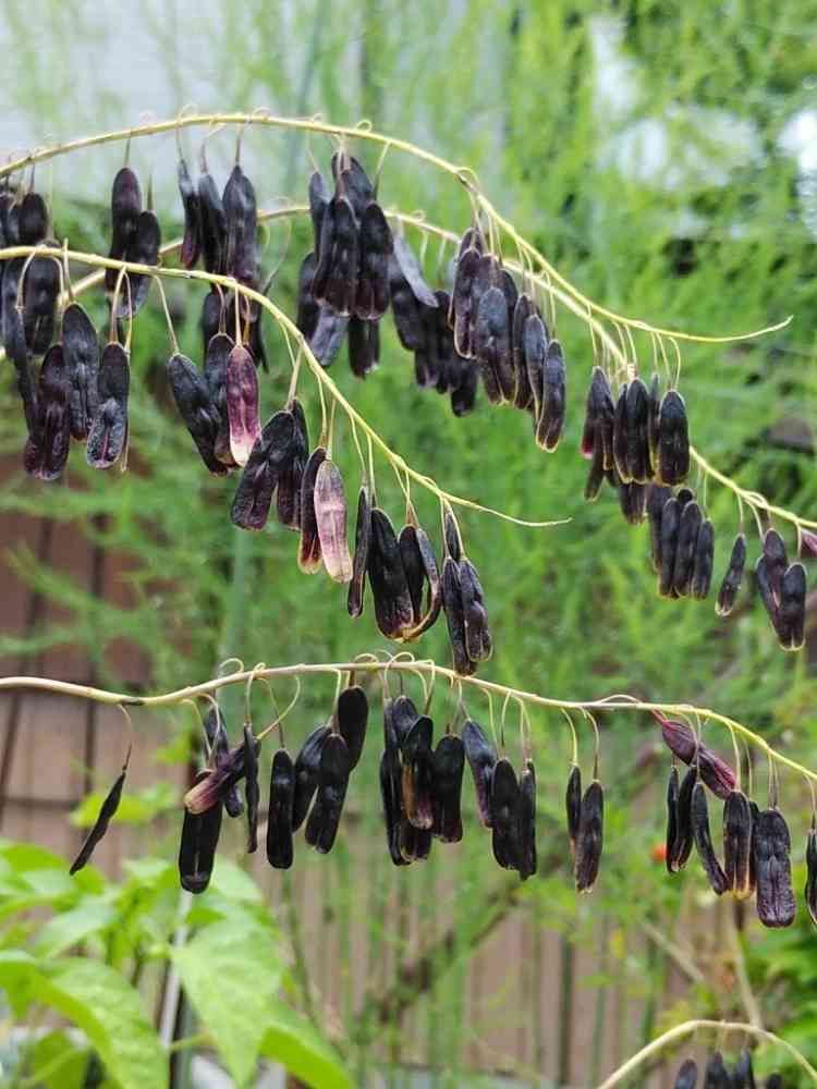 今日は雨🌁。天気のよかった昨日、種子をとればよかったけれど…だいぶ種子が下に落ちていました。また来年、どこかから芽を出すかな… 葉と根は抗菌・抗がん作用があるそうで、研究されているとのこと。染料になるというので、ダメ元で色の褪せたGパンでも染めてみようかな…