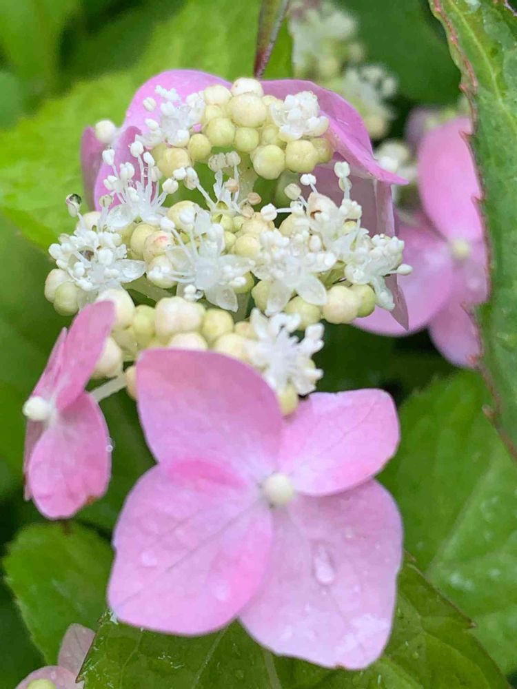 ずっと、装飾花の色を気にしてましたが、小さなお花が咲いてくれて、ほんとに可愛い姿です。