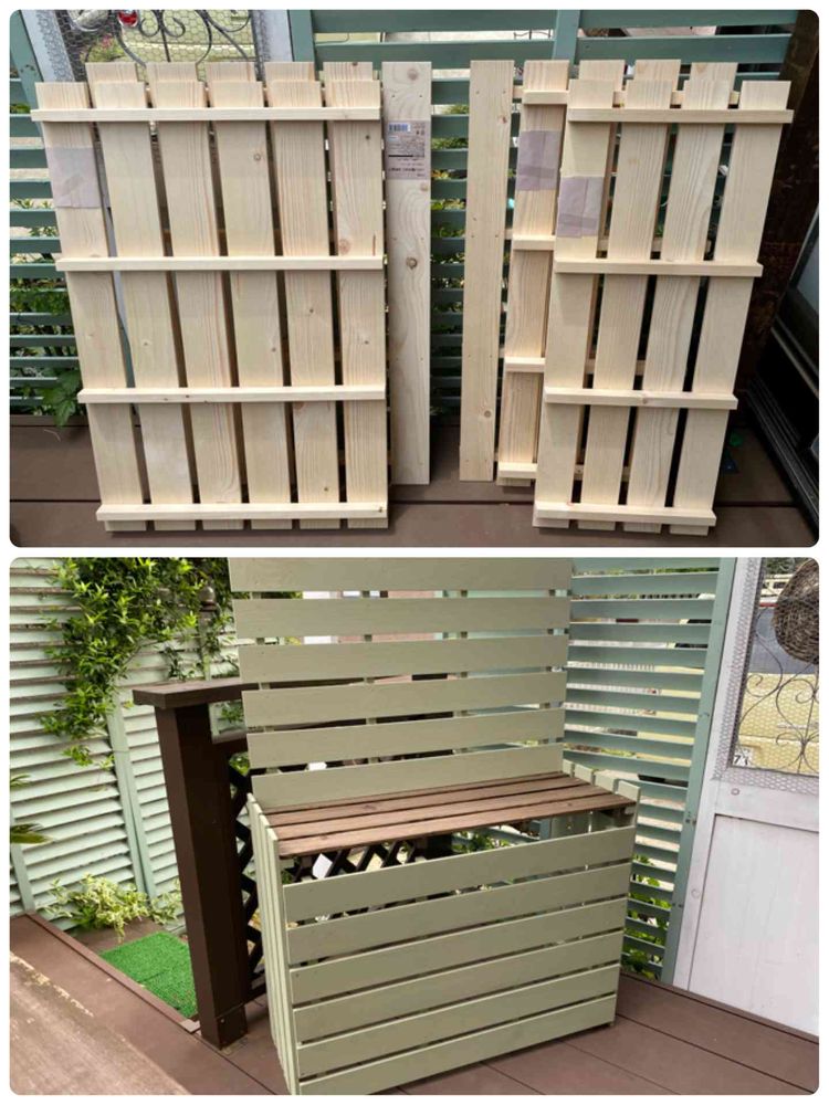 長女が、エアコンの室外機カバーが欲しいというので、旦那と3人で作りました。