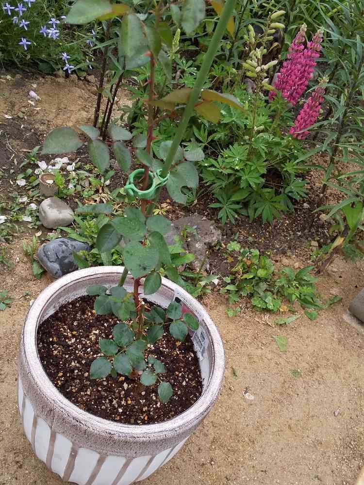 念願のプリンセスドゥモナコ🌹をやっと、植えました‼️庭の大改造しているので、二年位育ててから、地植えにと考えています🎵ワクワク😃💕