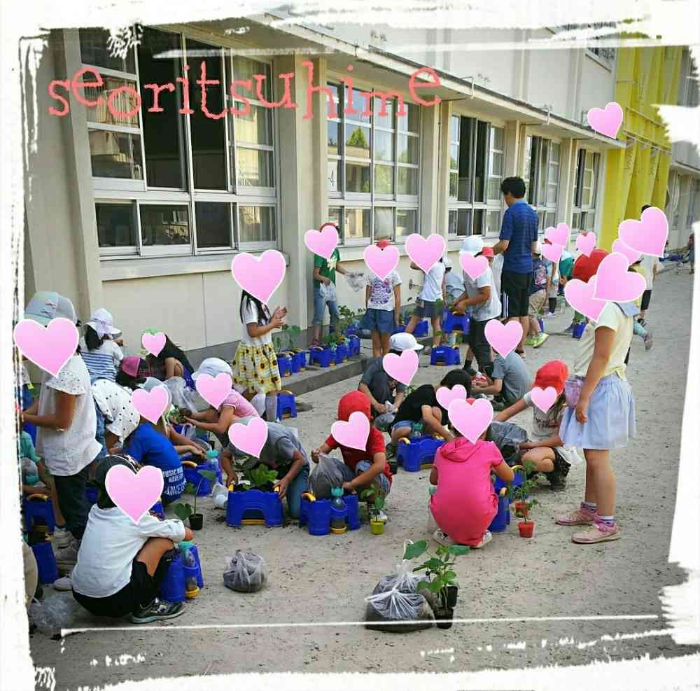 小学校二年生が理解できる言葉を選んで、野菜苗の植え方を説明しましたが…苗を折ったりして失敗する子がいないか心配でしたが、失敗なくみんなちゃんと植え付けてくれました。