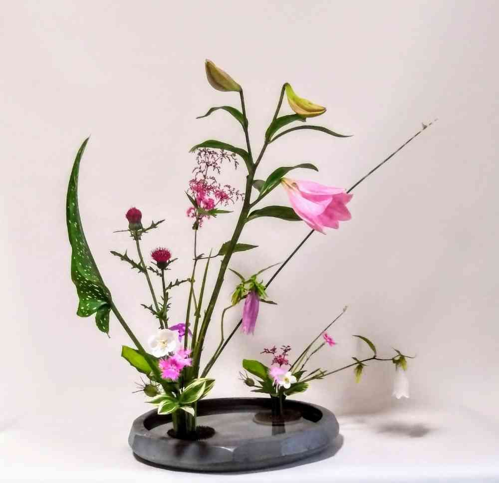 前回のいけばなはブルーガーデンをイメージしたものでしたが、今回は和風なピンク系の庭の花で、ピンクガーデンをイメージして生けてみました✨