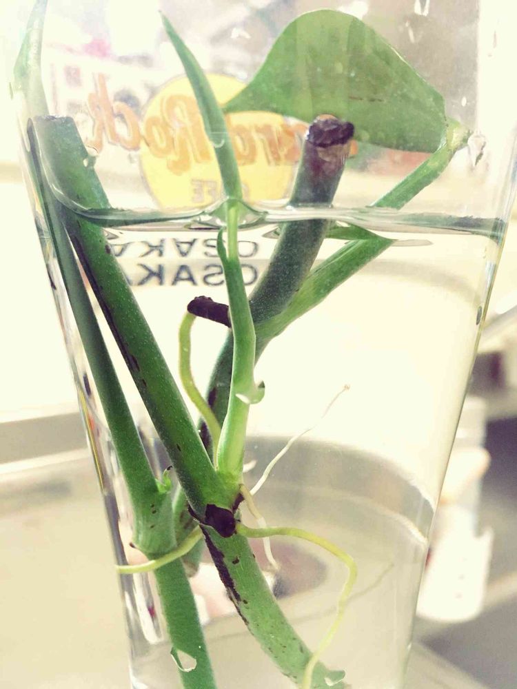 うちのポトス長い事お義母さんとこで水に浸されて根っこバンバン出てたやつだよー✨