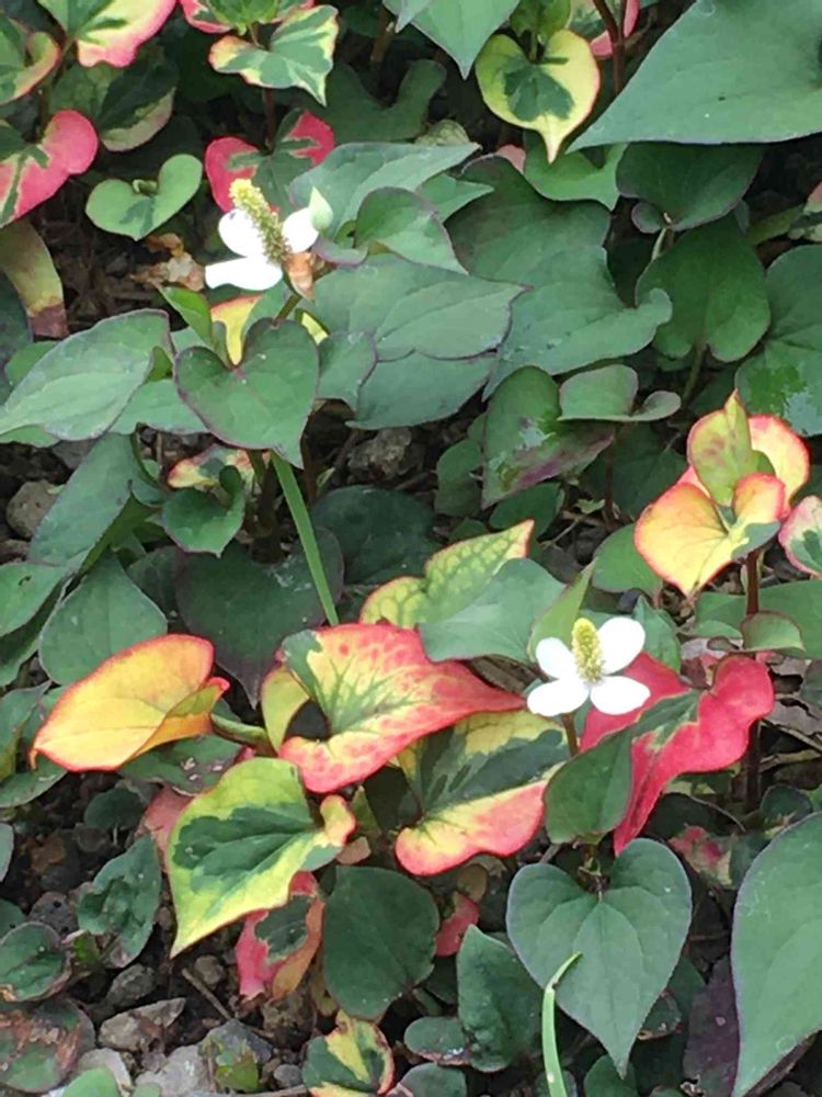 五色ドクダミと言うのですね。日光の当たり方で色が変わるところが好き。友だちからもらって少しずつ増やしています。