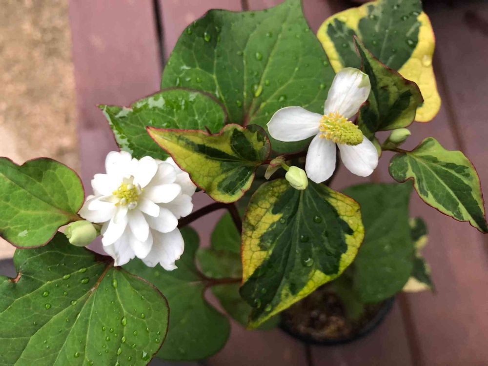 2年前に八重のドクダミを貰って鉢のまま置いてる、地植えにすると大変らしいねミントと対決させようかな😂