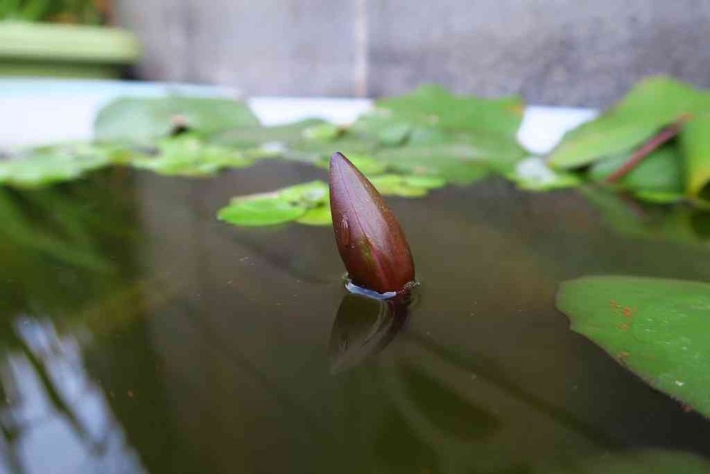 熱帯睡蓮(ティナ)の蕾。 水面から出てきました。 あと数日で今年最初の花が見れそう...