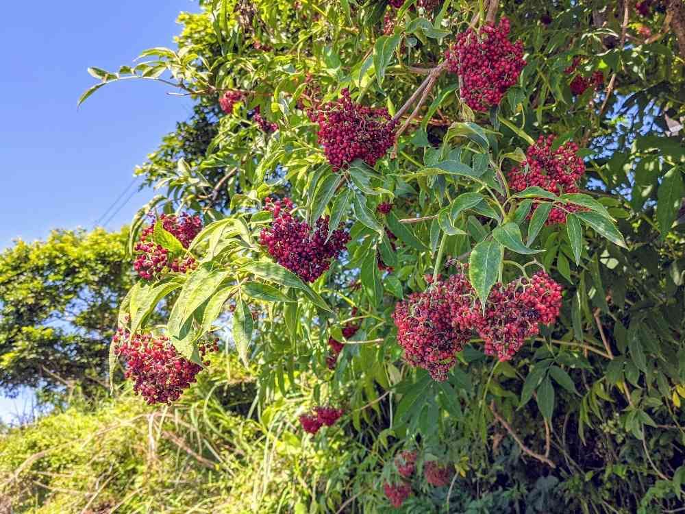 春に白い花を咲かせたニワトコが赤い実をつけました❤