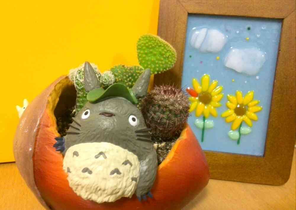 トトロは部屋に置きたくて、お手入れが楽なサボテンにしてみましたが可愛く仕上がりました💓