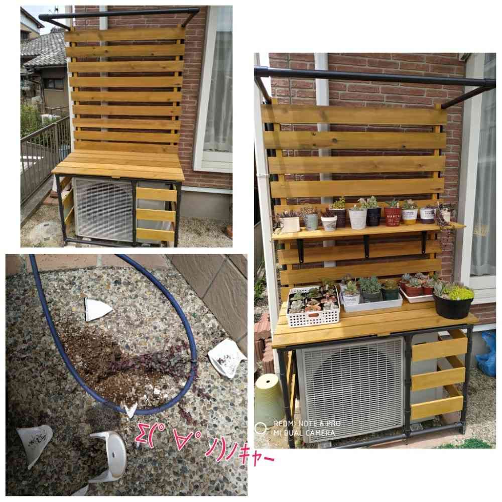 棚を作ってたら…ハートカズラの鉢を割ってしまったよΣ(゚∀゚ノ)ノキャー💦やってしまった😫