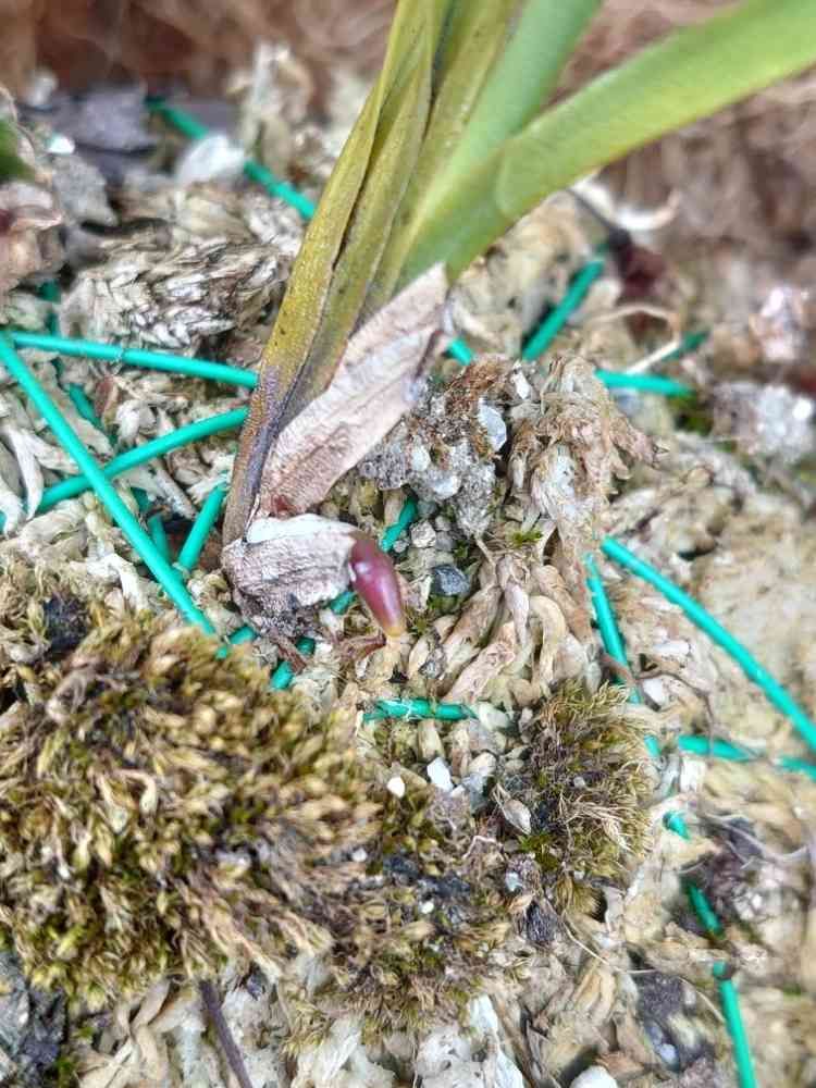 よくわからないまま見つけたときに近くにいた土や苔ごと水苔に巻き付けて置いといたら、赤ちゃんらしき突起が!