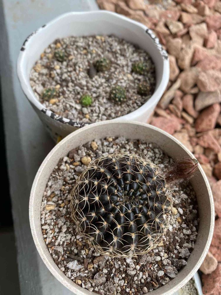 しこたまの子株と花芽をつけていた、エキノプシス・アラチナカンサと言うらしいくろすけサボテン🌵(。´_`。)🌵