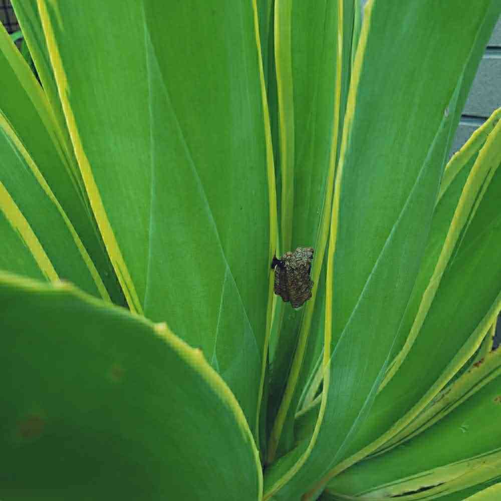 毎年、庭のどこかに蜂の巣を発見するんだけど、今年は大きくなったアガベの中〰️💦