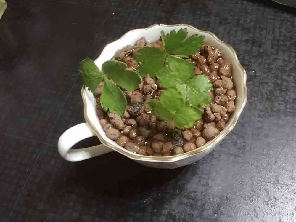 こちらも、想わぬところから生えていました。ミニバラのウィンターマジックの鉢から2本!解せぬ!とりあえず、少し育つまで、割れたティーカップに焼き直して消毒したハイドロボールで様子見。