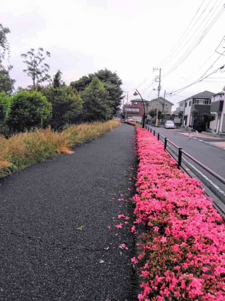 仕事帰りに、水元公園緑地の側の歩道の花壇に、ツツジが綺麗でした。