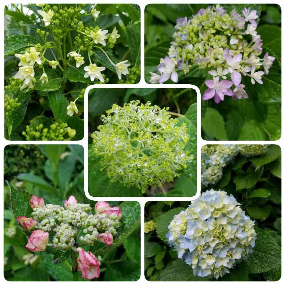 アジサイ!綺麗です!私には珍しいものばかりです💕特に、左下のピンク色々のガクアジサイ、素敵です。アップで見たいのですが、、、わがまま言ってすみません❗️❗️