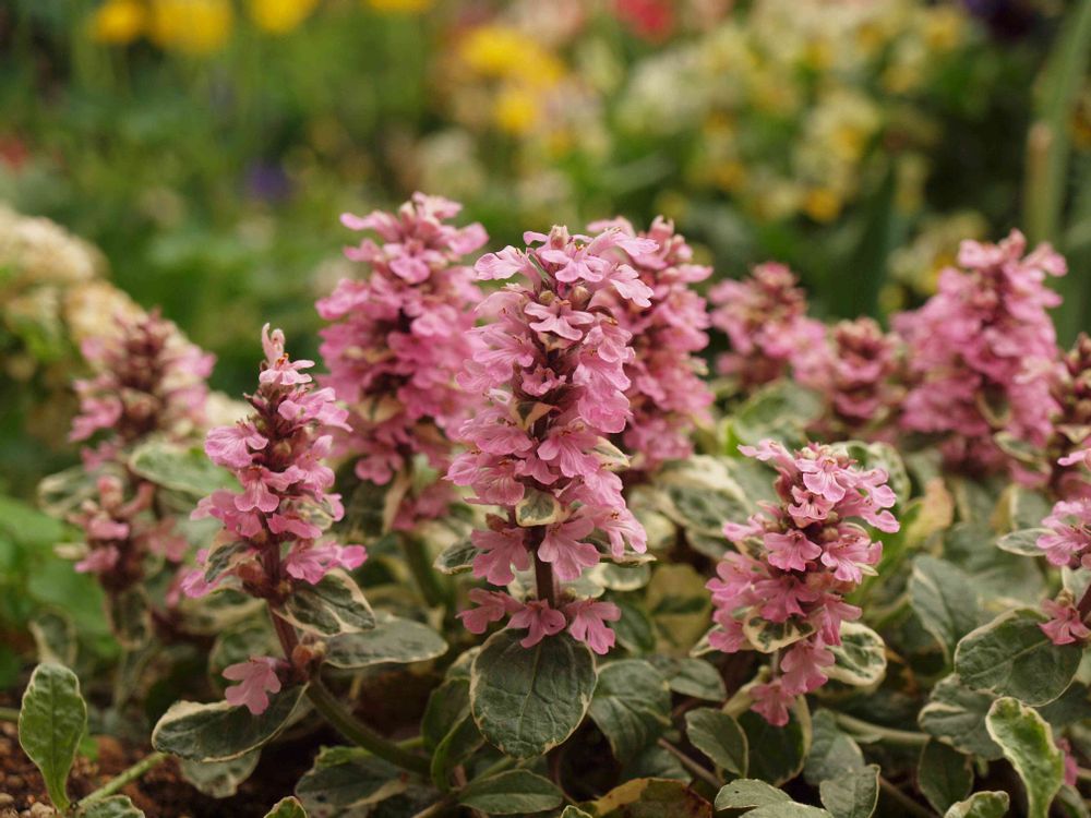 斑入り葉にピンクのお花の可愛いアジュガです。