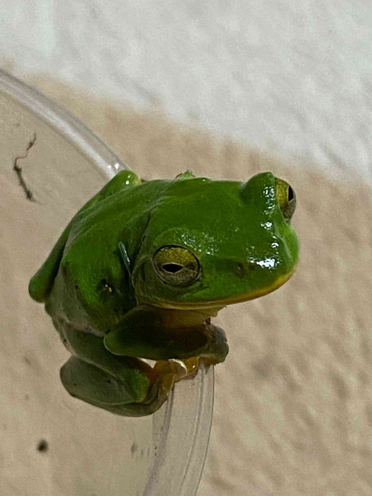 去年誕生したモリアオガエルが帰ってきました。オタマからカエル🐸になったあと行方不明(脱走とも言いますが)になっていました🤣