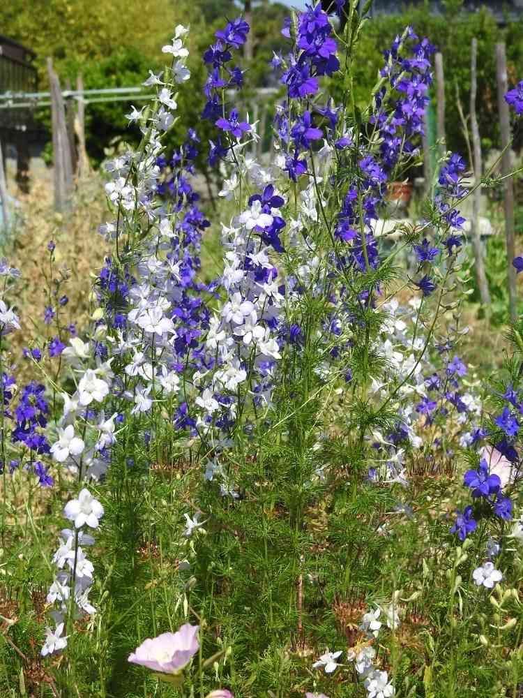 道すがら❗畑の中で🏵咲く紫と白のヒエンソウの花🌺
