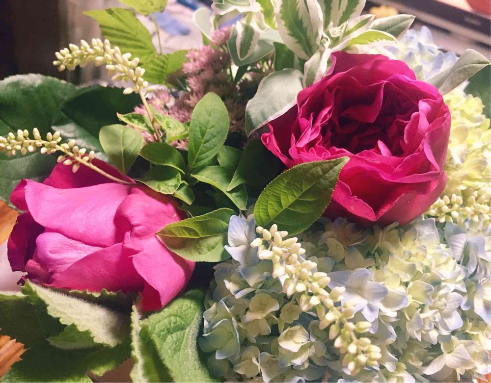 和バラ🌹(とてもいい香り😍)と紫陽花💠の取り合わせが、とても素敵😍 花屋さんのセンスが✨✨🤩 その花屋さんを選んでくれた息子にも感謝💕です🥰