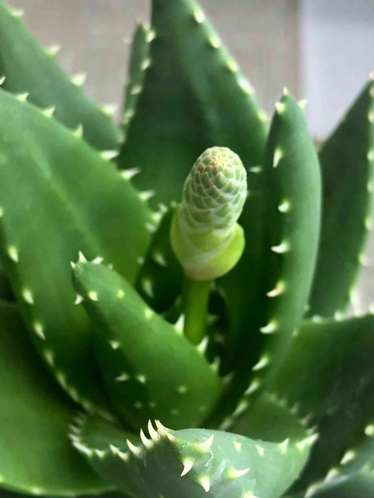 ぷくぷく青々に復活した不夜城に花芽があがってきました。