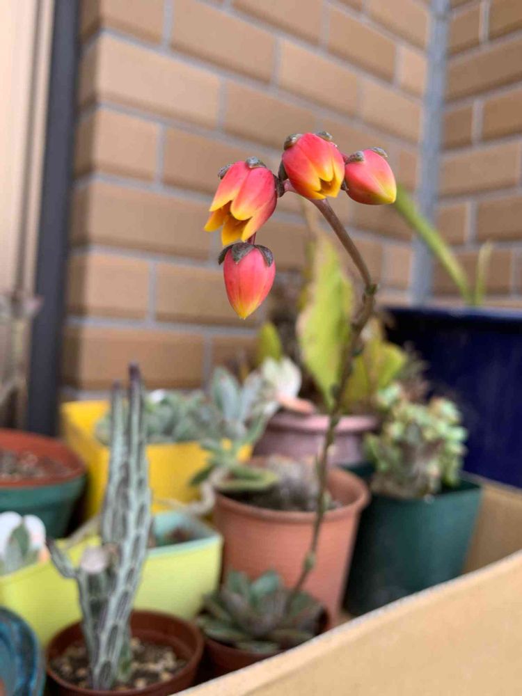 薔薇達は2番花の準備でまだ蕾なので、今日は多肉さんの花。いつも思うのですが、ポケモンに出て来そうなモンスター的な花だと思いませんか?(笑)