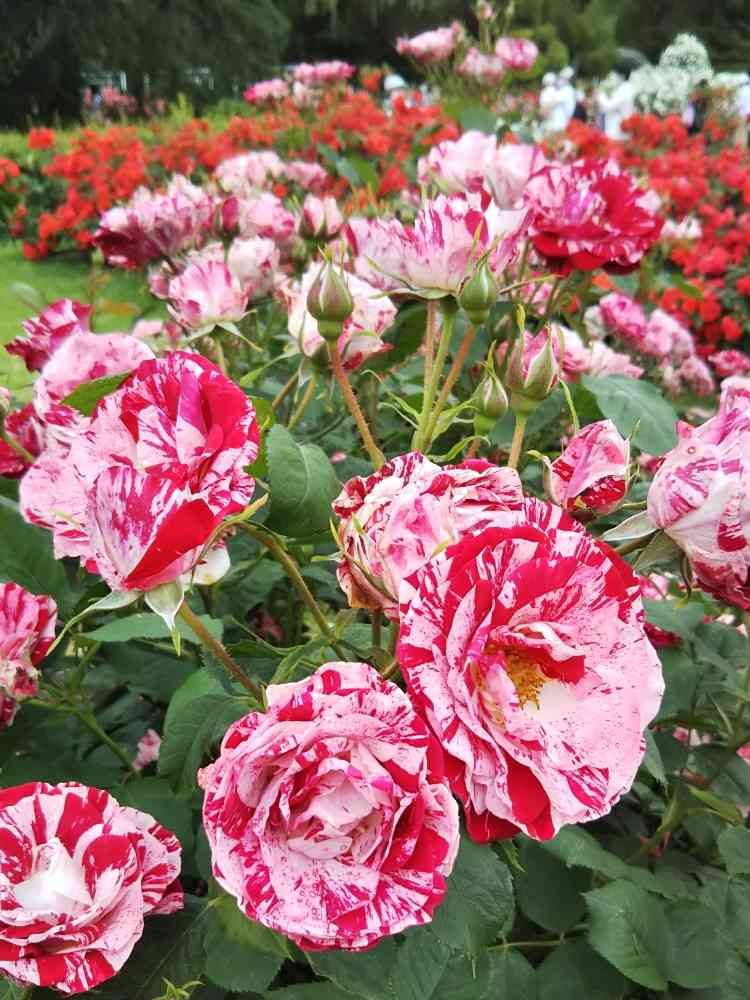 赤と白のくっきりした絞り模様がとても美しい🌹バラ🌹の「アラベスク」と言う品種です✋