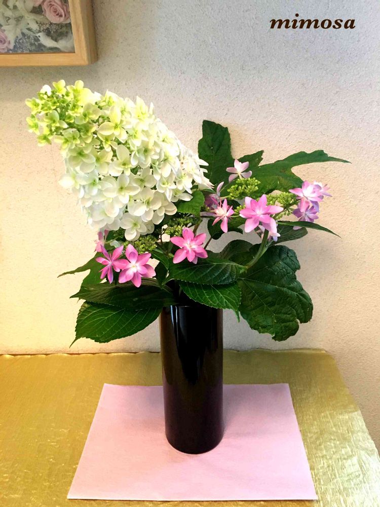 カシワバアジサイが曲がっていたので丁度この様な形に上手く収まってくれました💖