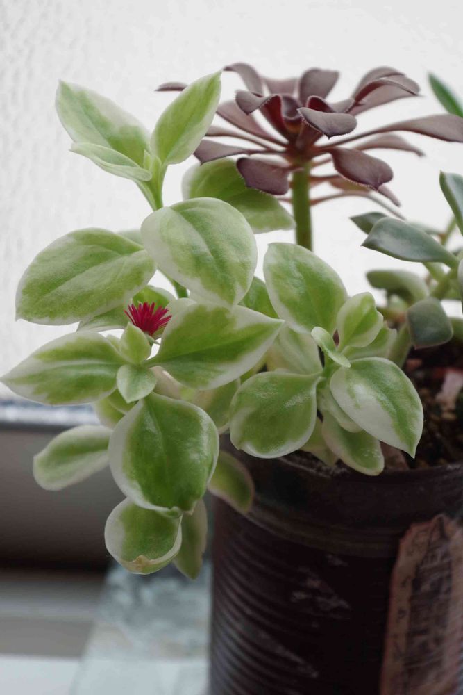 お家の中でスクスク成長中の多肉寄せ植えさん達、今日花が咲いてました〜♡