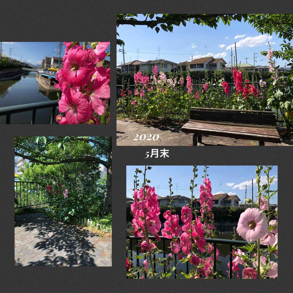 お出かけ先,タチアオイ,川沿いの遊歩道の投稿画像