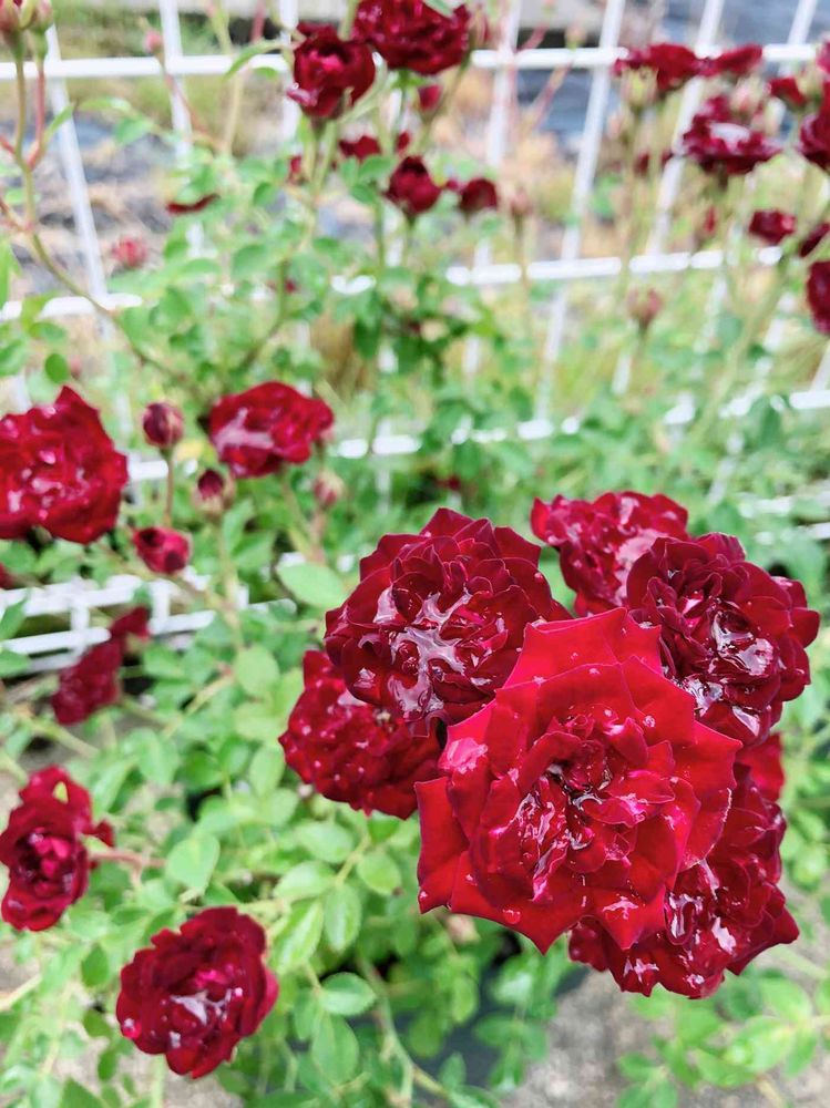 雨上がりのレッドキャスケードがうるうる🥺しているみたいで一段と可愛く見えました😊🌹