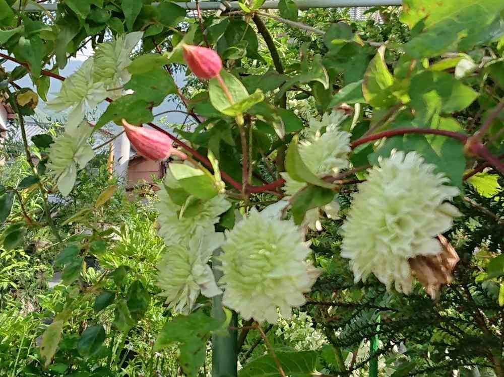 赤いクレマチスさん白いクレマチスさんが早くから咲いて待ってますよ😉いつ・・咲くp(^○^)