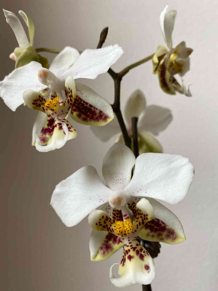 5月中旬に蕾付き苗をゲットしたファレノが無事に咲きました!花弁に小さな小さな点がとても可愛いです☺︎