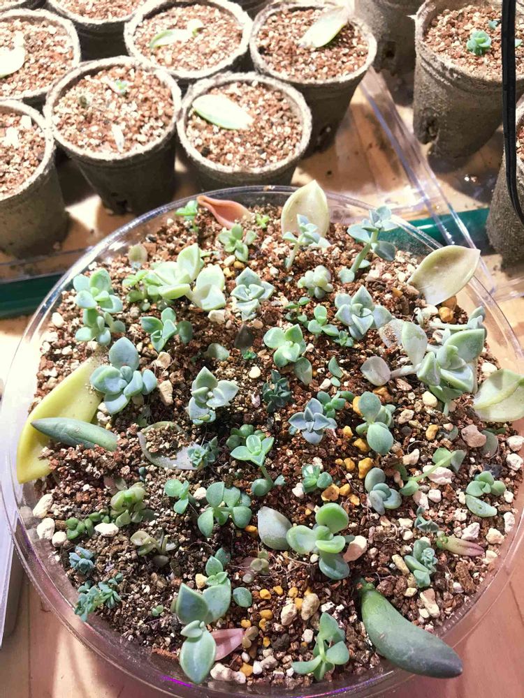 朧月とかいろいろもげたりもいだりした葉挿しが伸びてきたのでゴッチャリ丼にしてみた😁