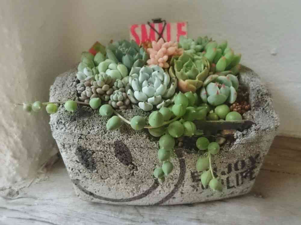 最後に作った寄せ植えは、SMILEコンクリ鉢の