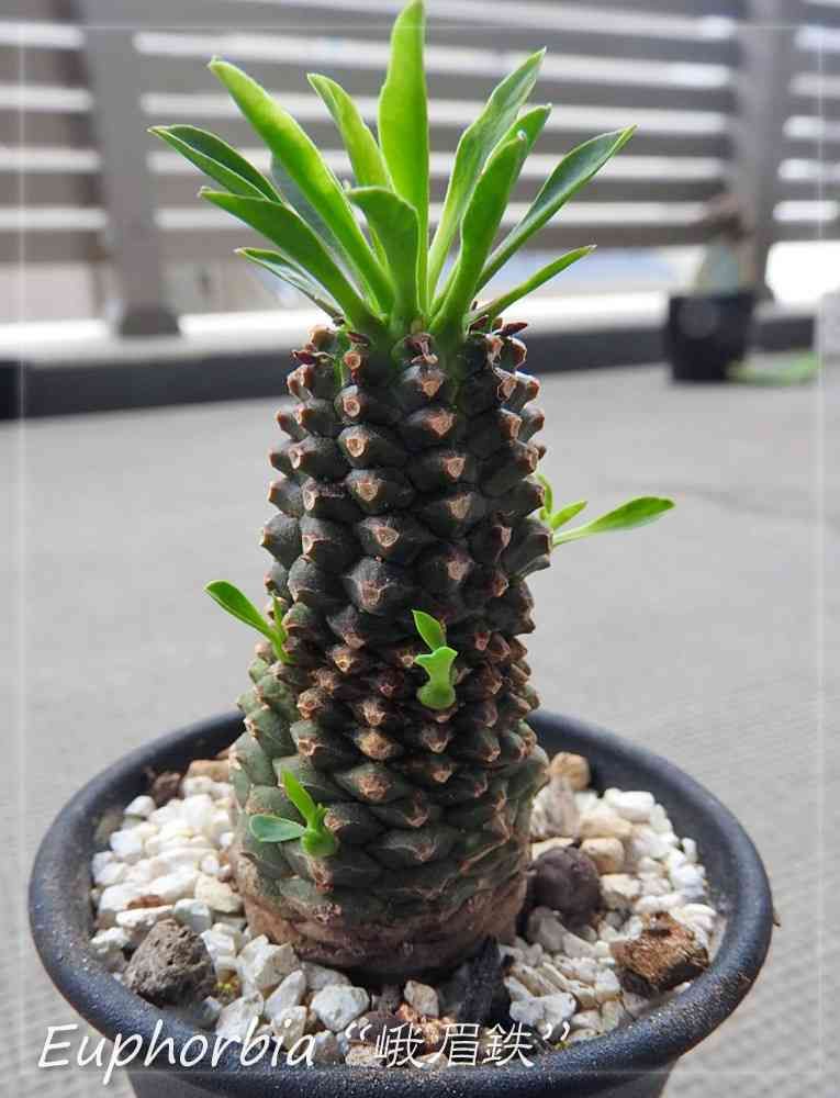 蘇鉄キリンとそっくりだけど、ついていた名前は「峨眉鉄」。名前の通りなら峨眉山×鉄甲丸なので、((鉄甲丸×鱗宝=怪魔玉)×鉄甲丸)×鉄甲丸……ということで、蘇鉄キリンより鉄甲丸の血が濃くなると言うことに。