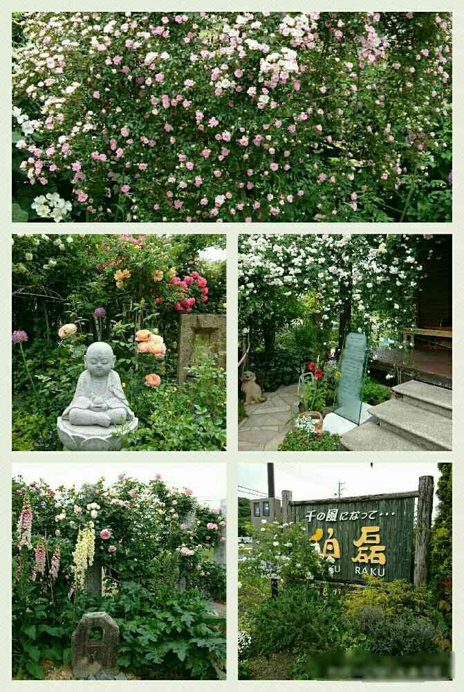 石材店さんの墓石の展示場が、バラで埋め尽くされた中にさりげなく展示してある素敵なオープンガーデンになっています💝💝